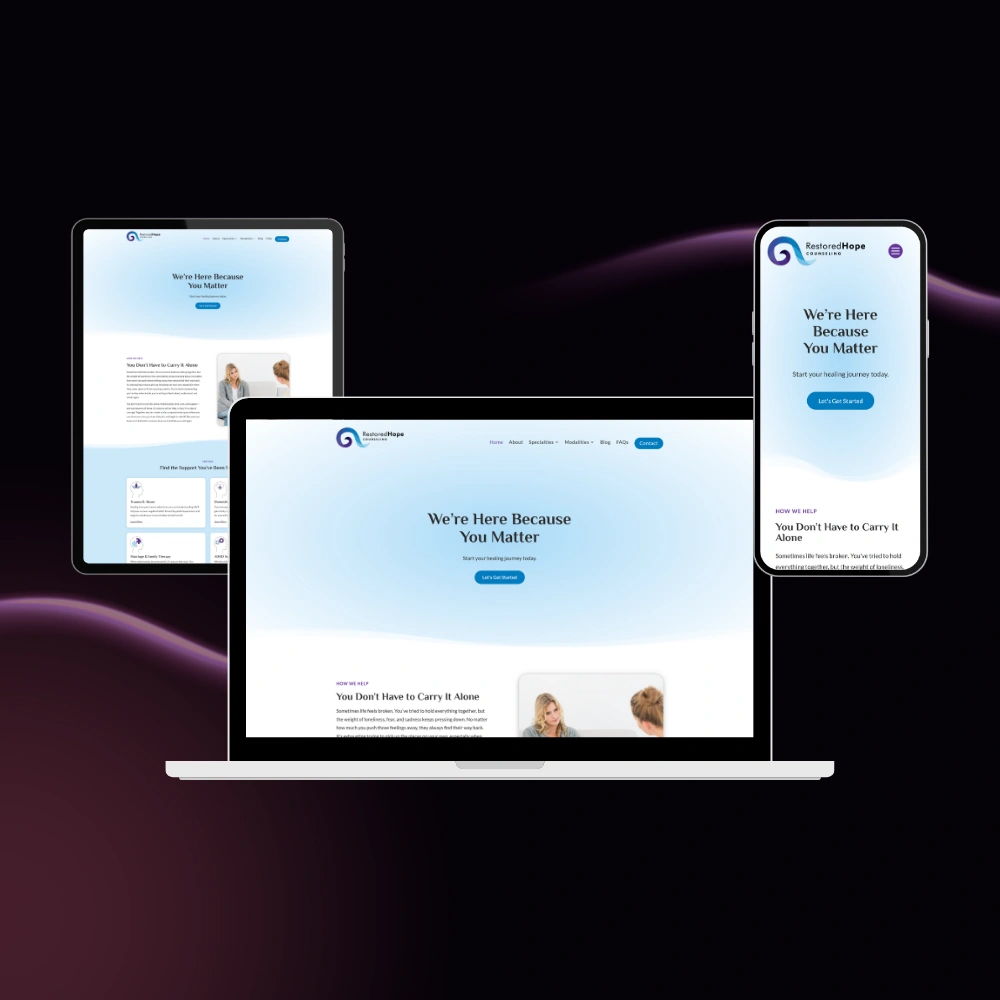 Restored Hope Counseling’s website needed a refresh to better support the people visiting it. The existing site felt outdated, difficult to navigate, and slow, which made it harder for users to find the information they were looking for.
